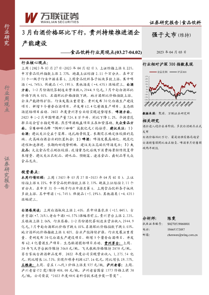 万联证券:食品饮料行业周观点:3月白酒价格环比下行,贵州持续推进酒企产能建设.pdf