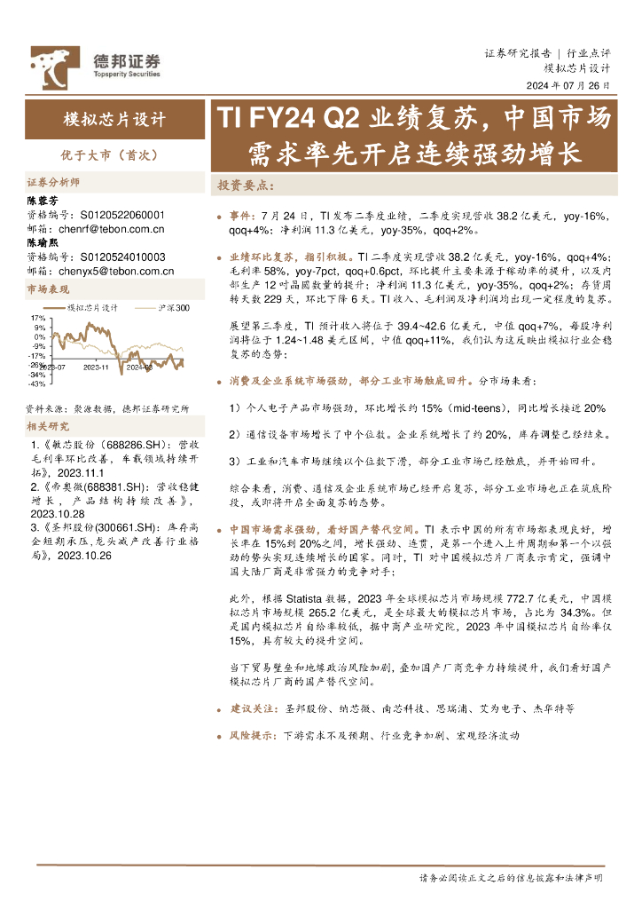 德邦证券:模拟芯片设计:TIFY24Q2业绩复苏,中国市场需求率先开启连续强劲增长.pdf