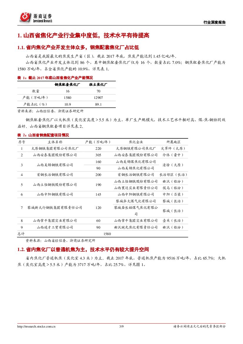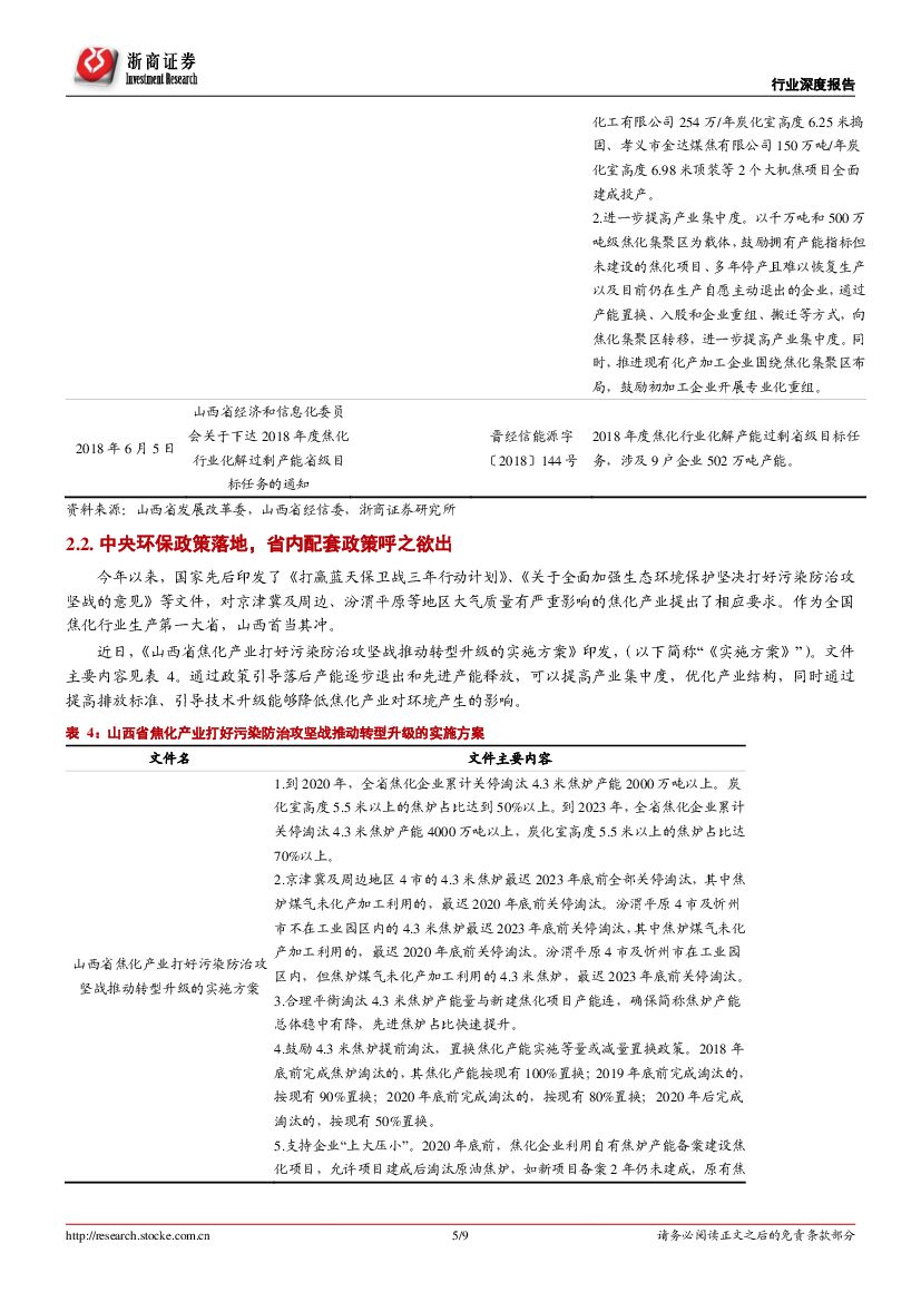 浙商证券:煤炭行业:《山西省焦化产业打好污染防治攻坚战推动转型升级的实施方案》对省内焦化行业产能影响分析.pdf