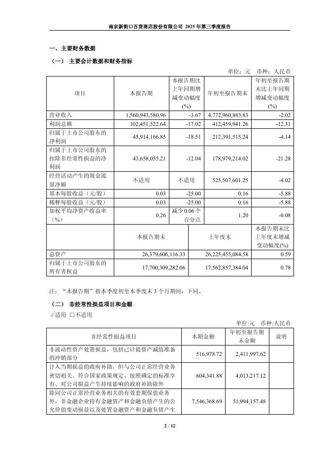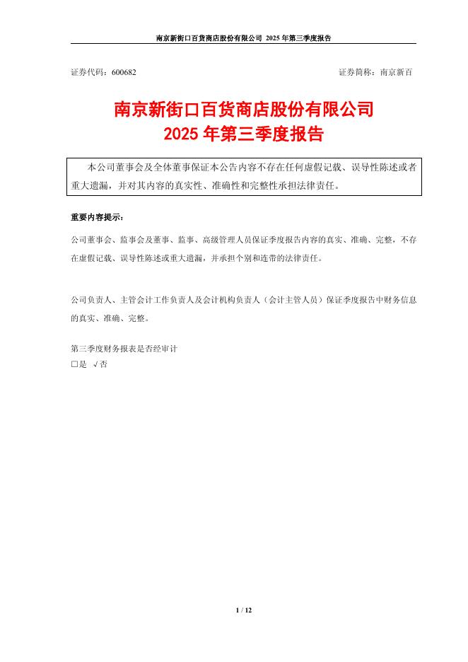 600682-南京新百:南京新百2025年第三季度报告.pdf