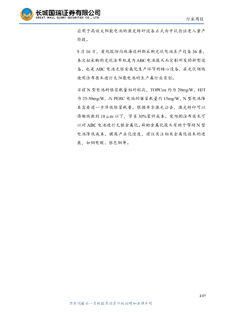 长城国瑞证券:机械设备行业双周报2022年第15期总第15期:电池金属化技术取得新进展 技术降本助力N型电池市场化速度加快.pdf