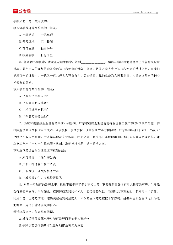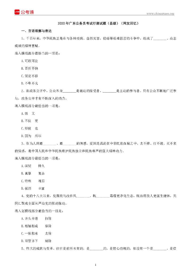 2020年广东公务员考试行测试题及答案(县级).pdf