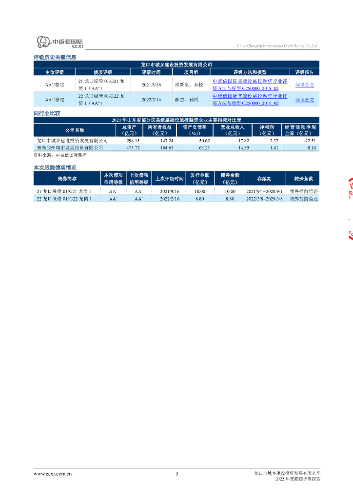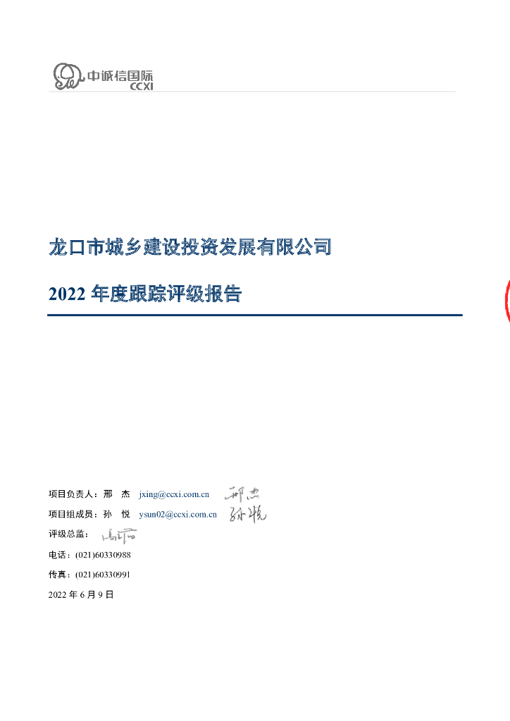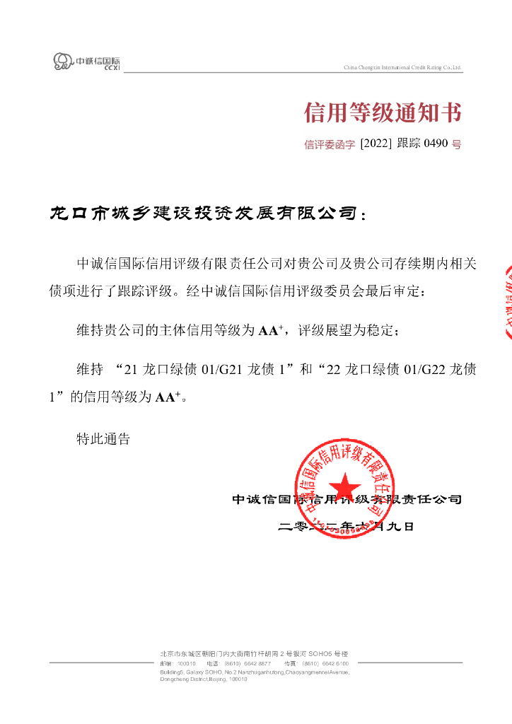 中诚信:龙口市城乡建设投资发展有限公司2022年度跟踪评级报告.pdf