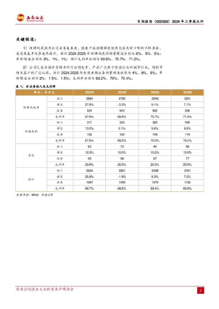 西南证券:百润股份(002568)-Q3收入承压,期待威士忌新品.pdf