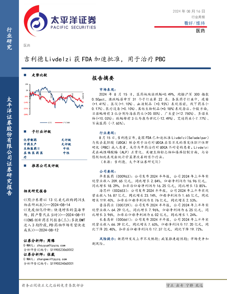 太平洋证券:医药行业周报:吉利德Livdelzi获FDA加速批准,用于治疗PBC.pdf