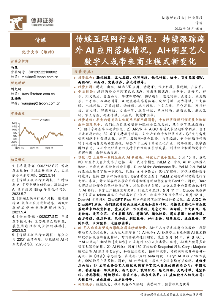 德邦证券:传媒互联网行业周报:持续跟踪海外AI应用落地情况,AI+明星艺人数字人或带来商业模式新变化.pdf