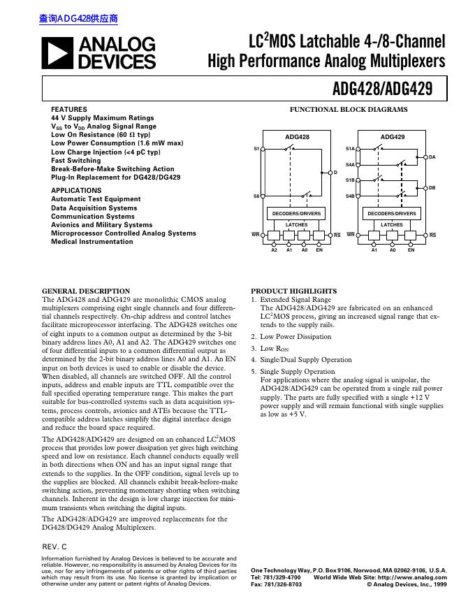 ANALOG DEVICES ADG428/ADG429 数据手册.pdf
