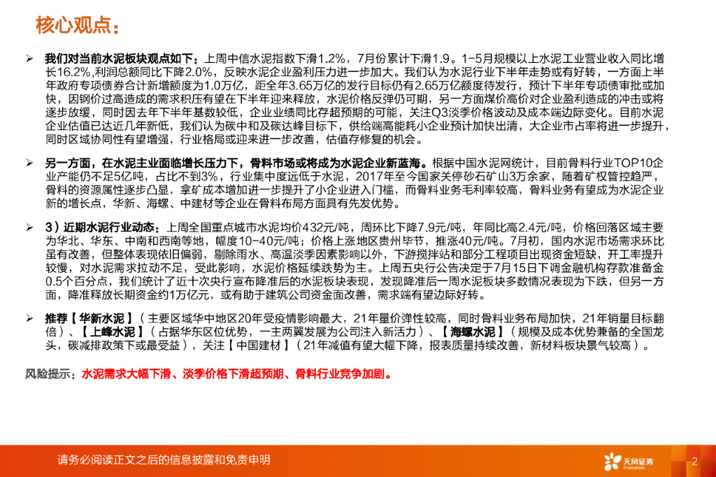 天风证券:水泥制造行业研究周报:淡季价格继续下滑,资金面好转或带动需求边际改善.pdf