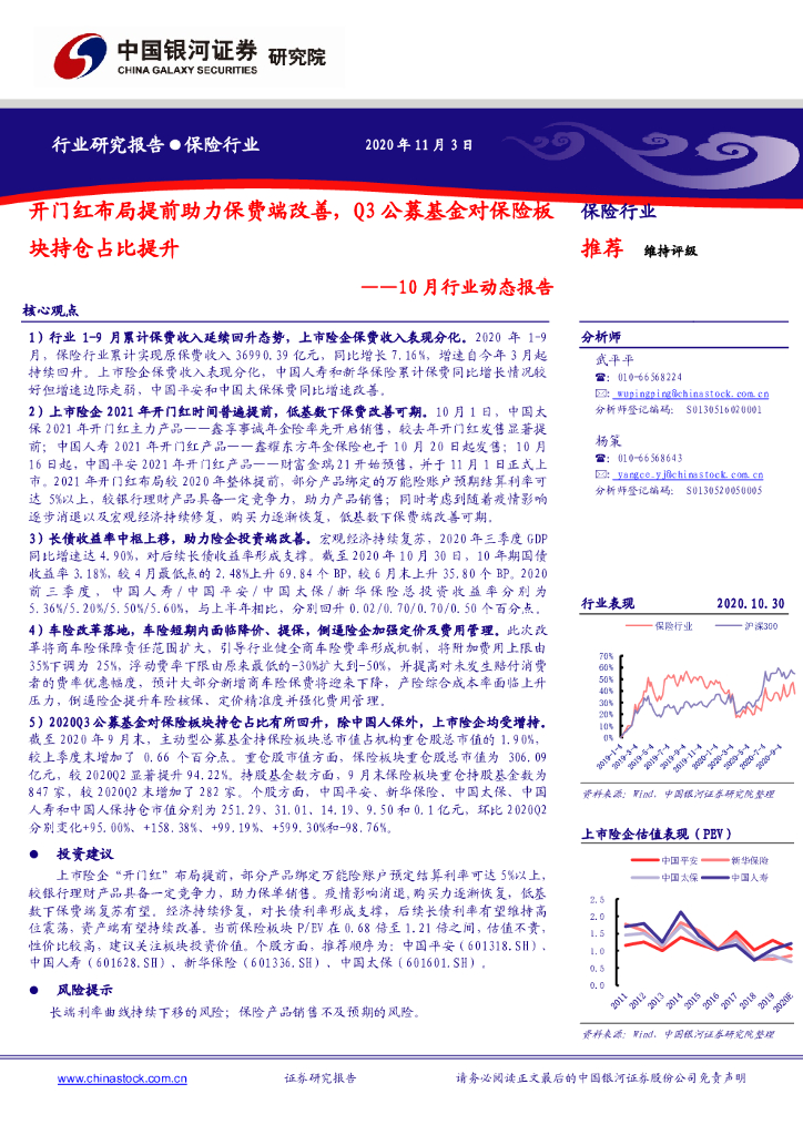 中国银河:保险行业10月行业动态报告:开门红布局提前助力保费端改善,Q3公募基金对保险板块持仓占比提升.pdf