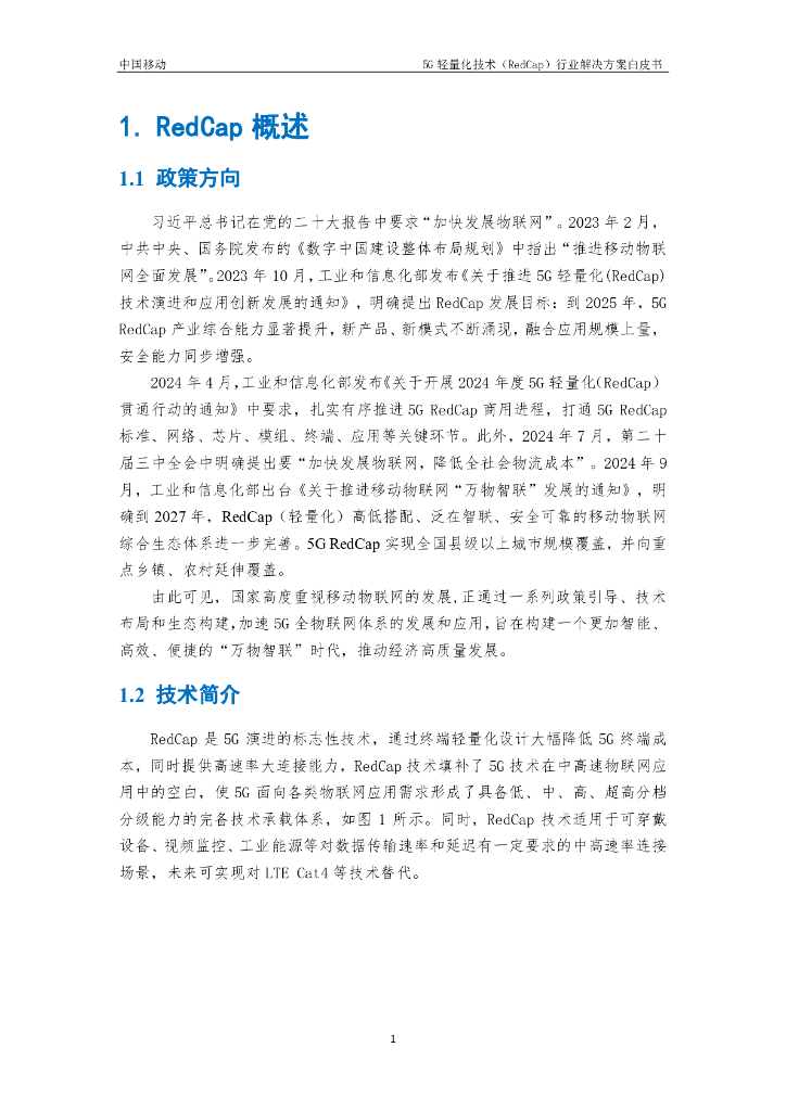 中国移动:2024年5G轻量化技术(RedCap)行业解决方案白皮书.pdf