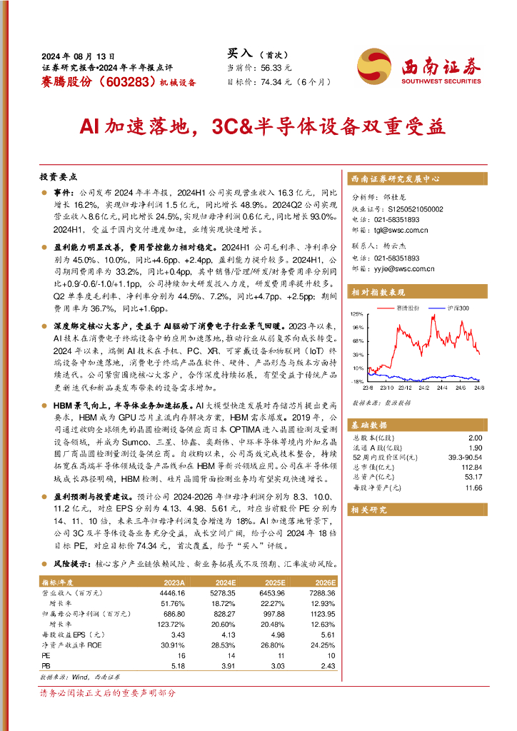 西南证券:赛腾股份(603283)-2024年半年报点评:AI加速落地,3C&半导体设备双重受益.pdf