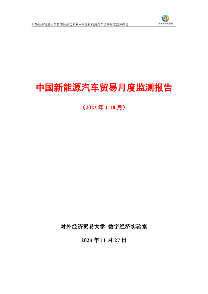 对外经济贸易大学:中国新能源汽车贸易月度监测报告(2023年1-10月).pdf