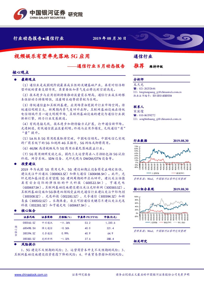 中国银河:通信行业8月动态报告:视频娱乐有望率先落地5G应用.pdf