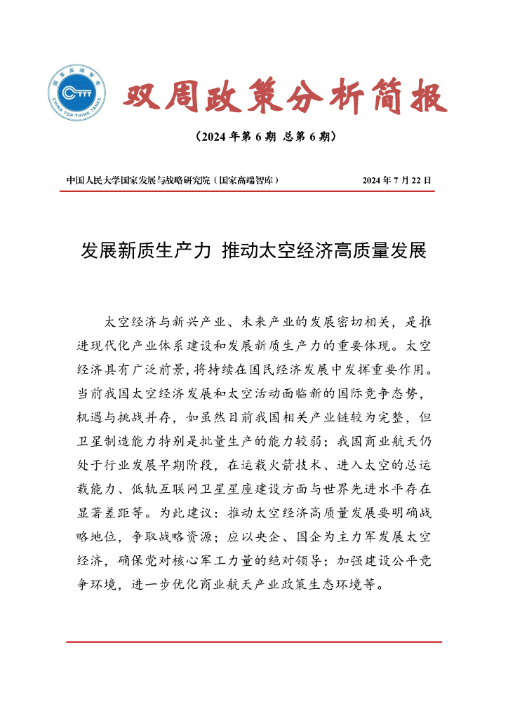 国发院双周政策分析简报第六期:发展新质生产力 推动太空经济高质量发展.pdf