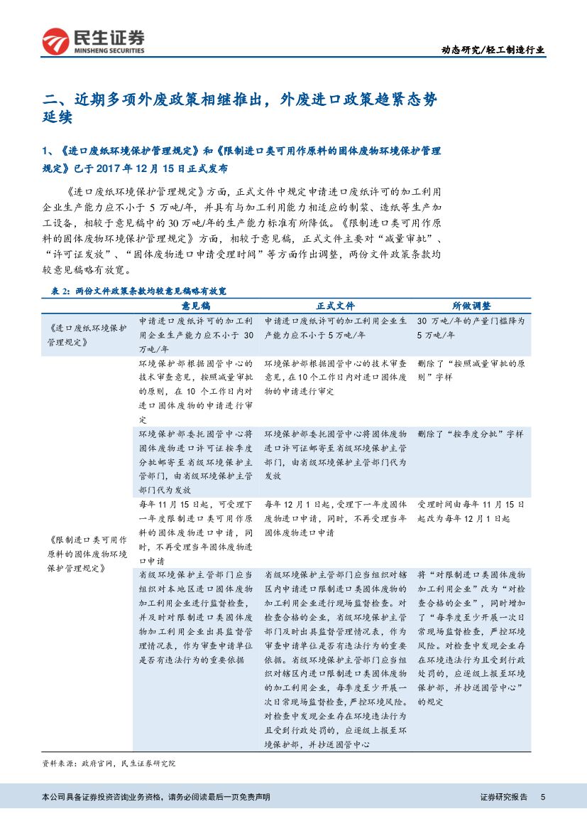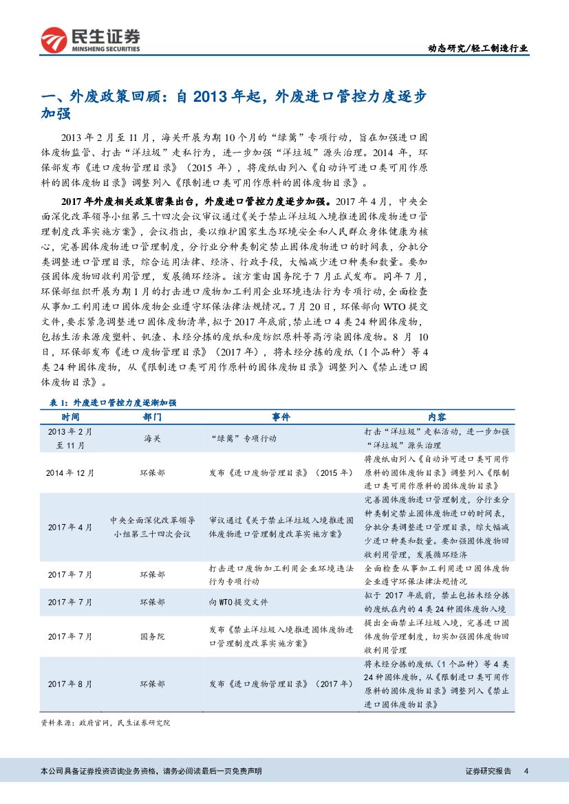 民生证券:轻工制造动态报告:多项外废政策相继推出,外废进口政策趋紧态势延续.pdf
