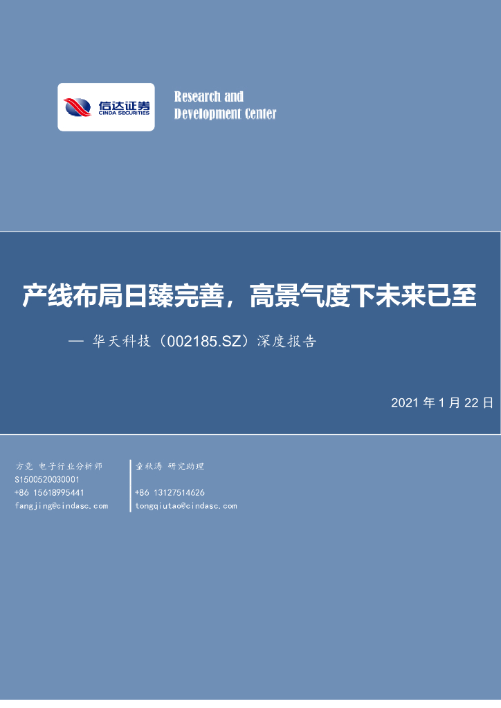 信达证券:华天科技(002185)-深度报告:产线布局日臻完善,高景气度下未来已至.pdf