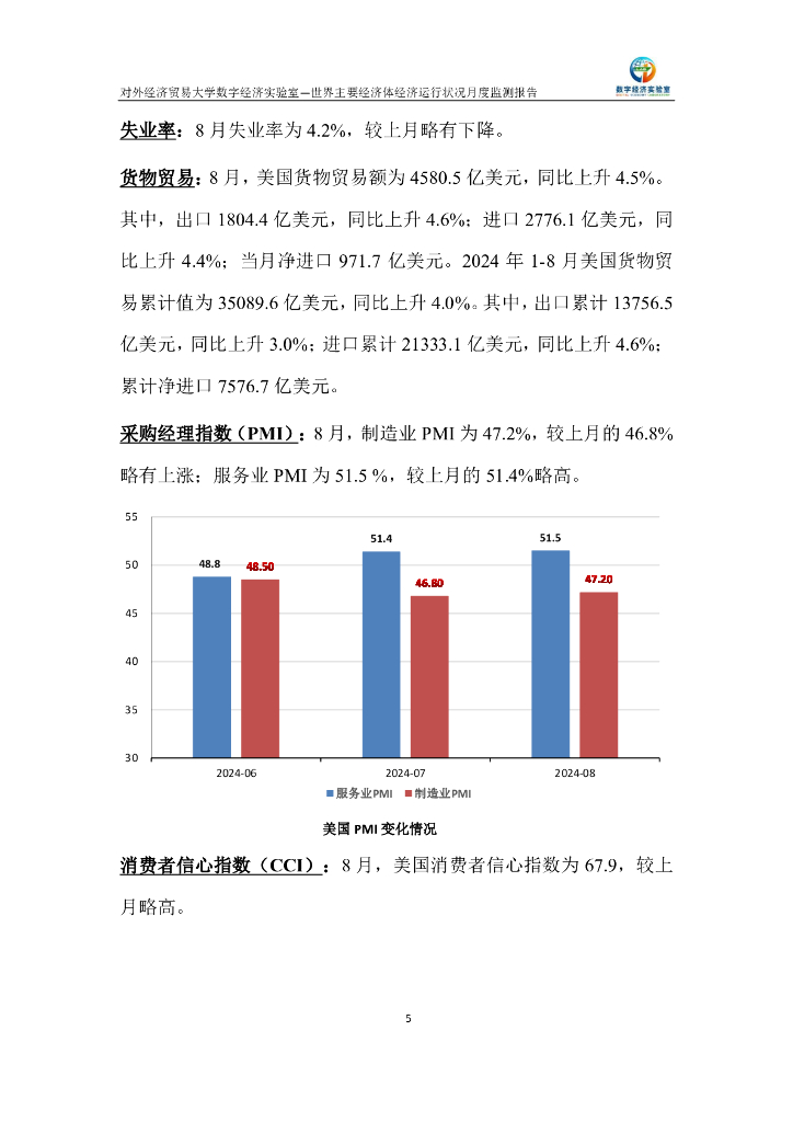 对外经济贸易大学:世界主要经济体经济运行状况月度监测报告(2024年8月).pdf