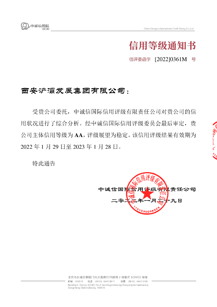 中诚信:西安浐灞发展集团有限公司主体信用评级报告.pdf