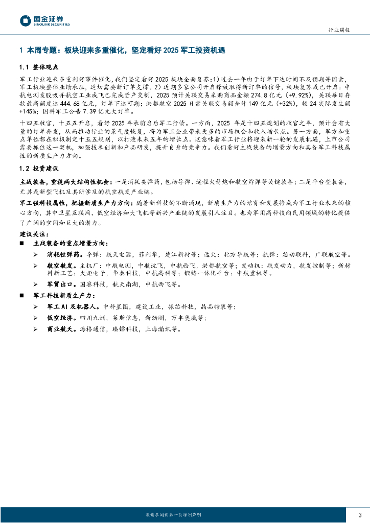 国金证券:军工行业周报:板块迎来多重催化,坚定看好2025军工投资机遇.pdf