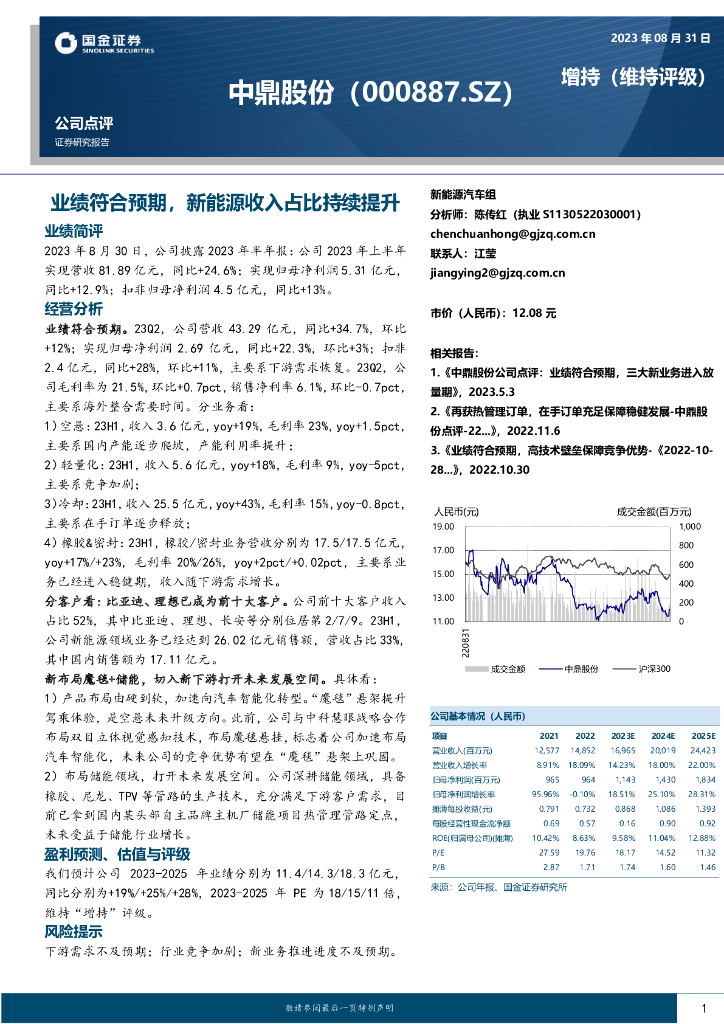 国金证券:中鼎股份(000887)-业绩符合预期,新能源收入占比持续提升.pdf