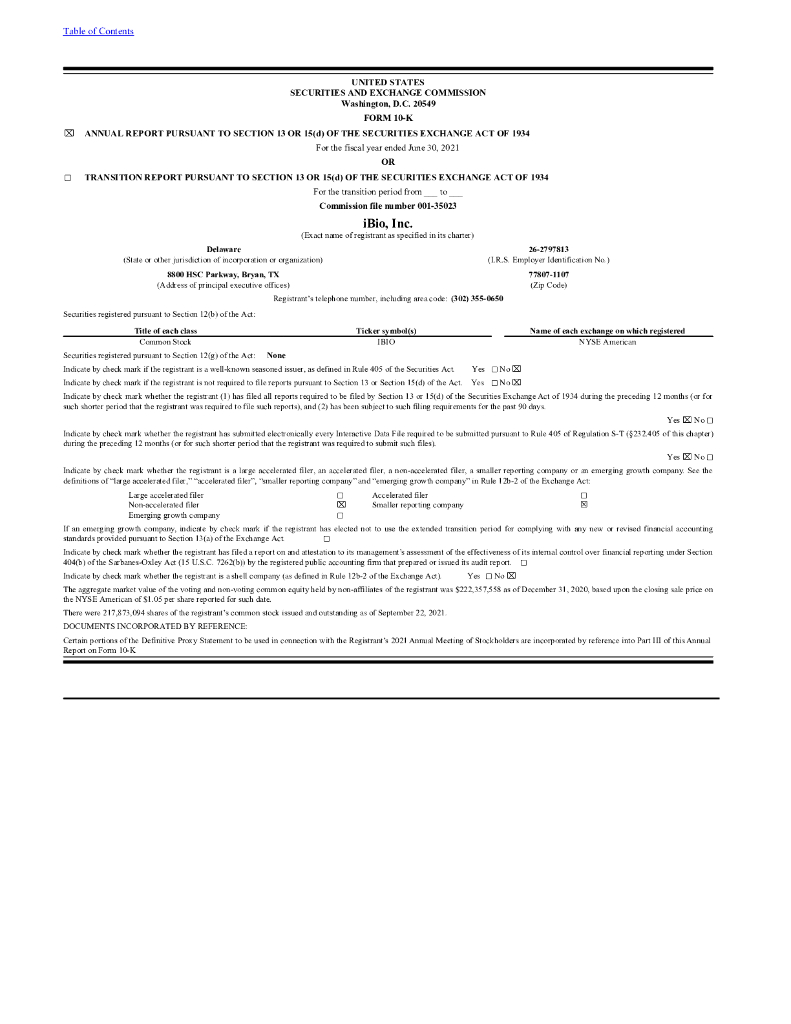 IBIO, Inc.(IBIO)2021财年年度报告(英文版).pdf
