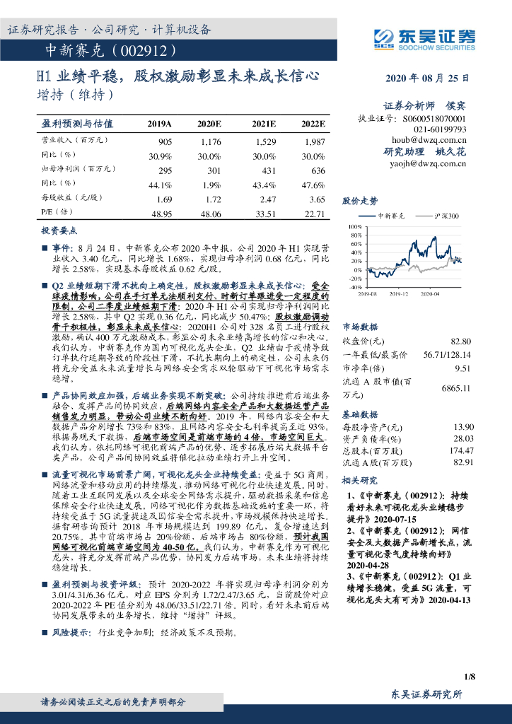 东吴证券:中新赛克(002912)-H1业绩平稳,股权激励彰显未来成长信心.pdf