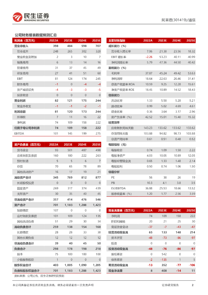 民生证券:阿莱德(301419)-2023年三季报点评:收入与毛利率稳定,现金流改善,或受益5.5G建设需求.pdf
