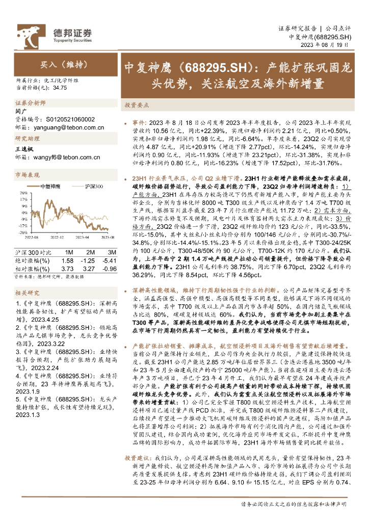 德邦证券:中复神鹰(688295)-产能扩张巩固龙头优势,关注航空及海外新增量.pdf