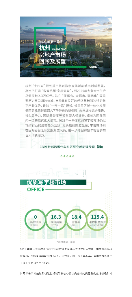 世邦魏理仕:2021年第一季度杭州房地产市场回顾及展望.pdf