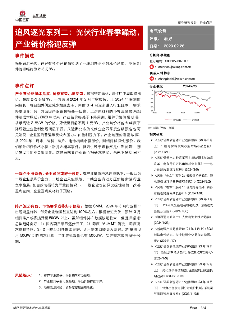 五矿证券:追风逐光系列二:光伏行业春季躁动,产业链价格迎反弹.pdf