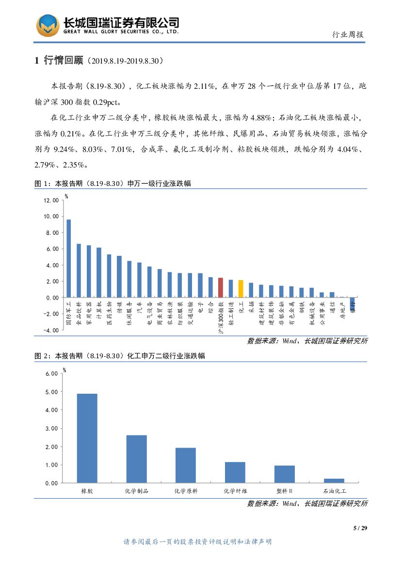 长城国瑞证券:化工行业双周报2019年第17期(总第17期):2018年中国天然气需求增长430亿立方米,2019中国石油和化工企业500强发布.pdf