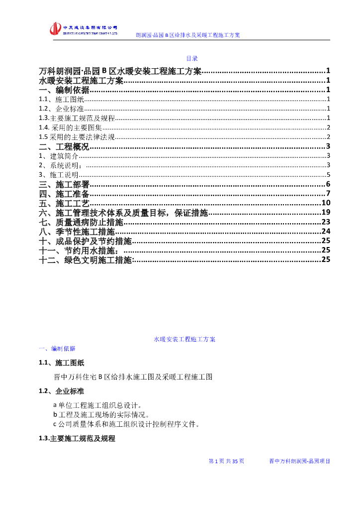 知名地产住宅区水暖安装工程施工方案(36P.doc