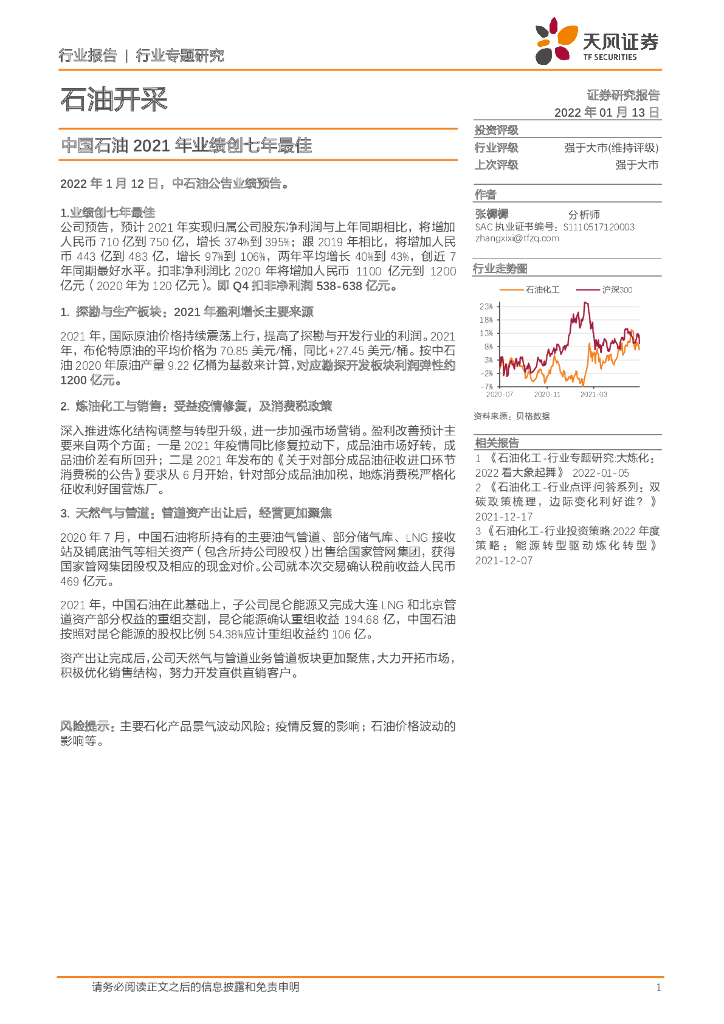 天风证券:石油开采行业专题研究:中国石油2021年业绩创七年最佳.pdf