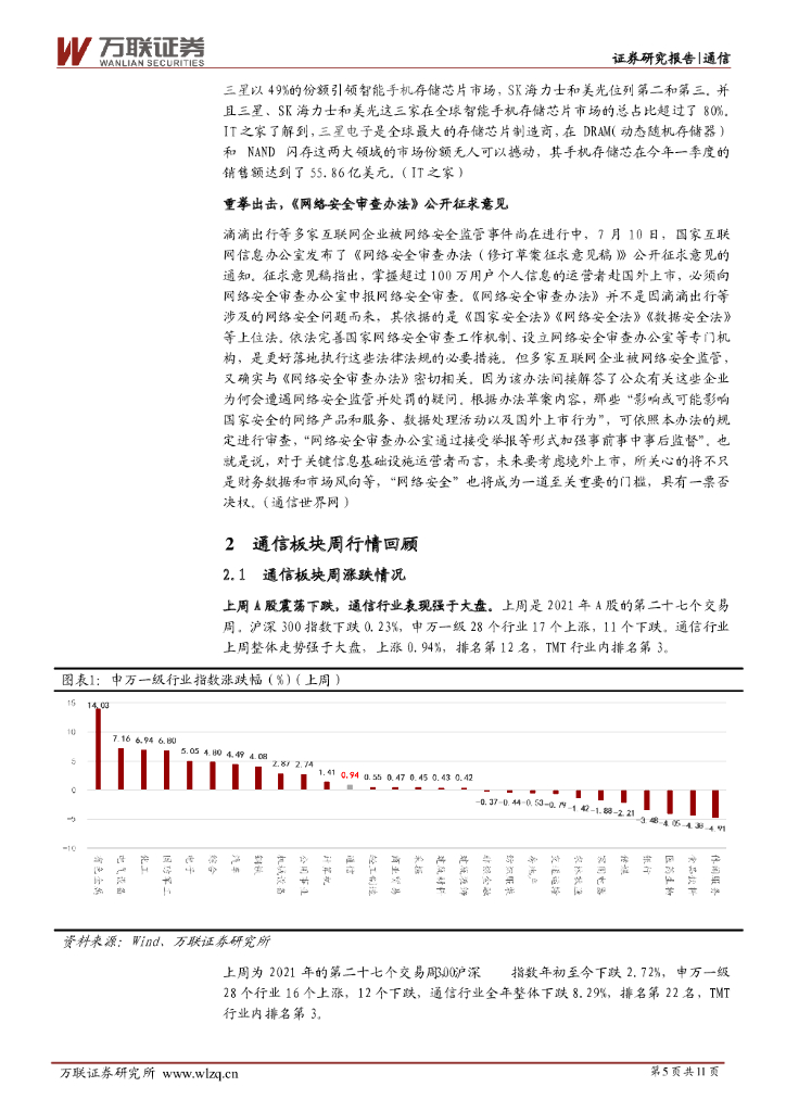 万联证券:通信行业周观点:电联2.1G招标启动,下半年5G景气度或将回暖.pdf