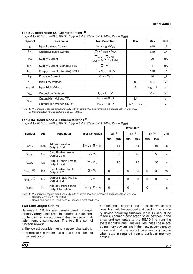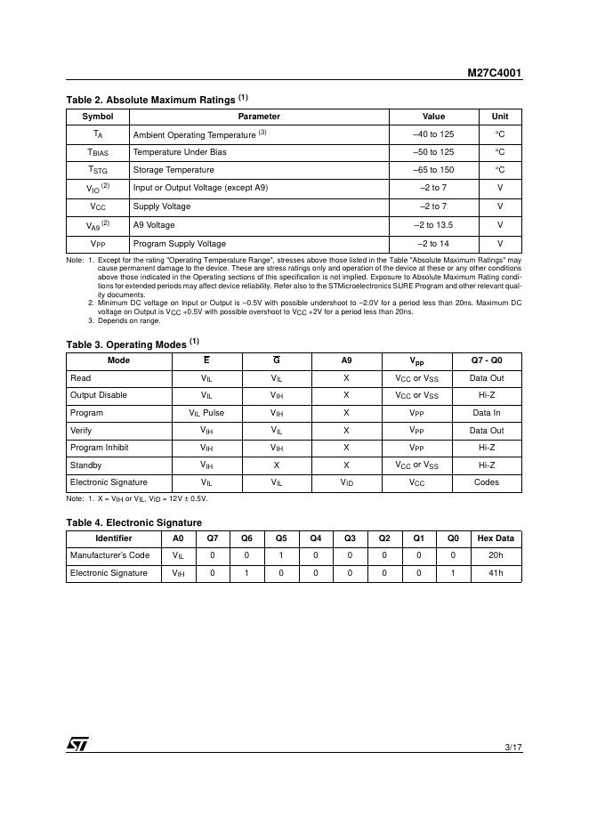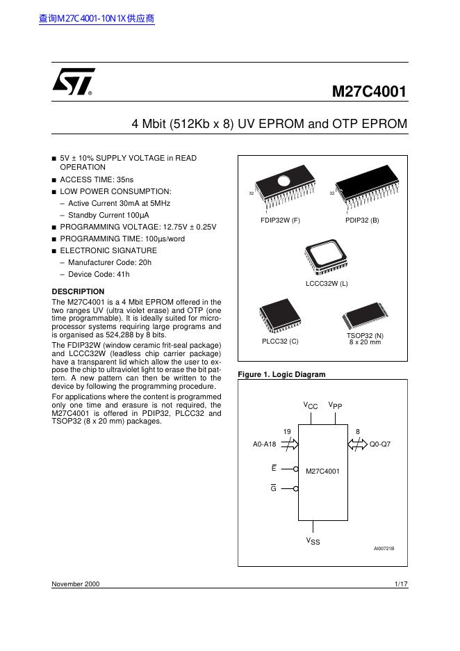 ST M27C4001 4 Mbit (512Kb x 8) UV EPROM and OTP EPROM 数据手册.pdf