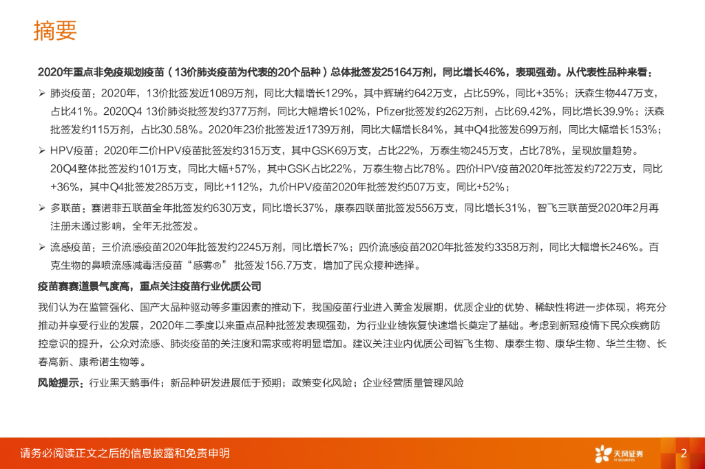 天风证券:生物制品行业专题研究:2020年疫苗批签发报告:核心品种整体批签发大幅增长,肺炎、HPV、流感等疫苗表现强劲.pdf