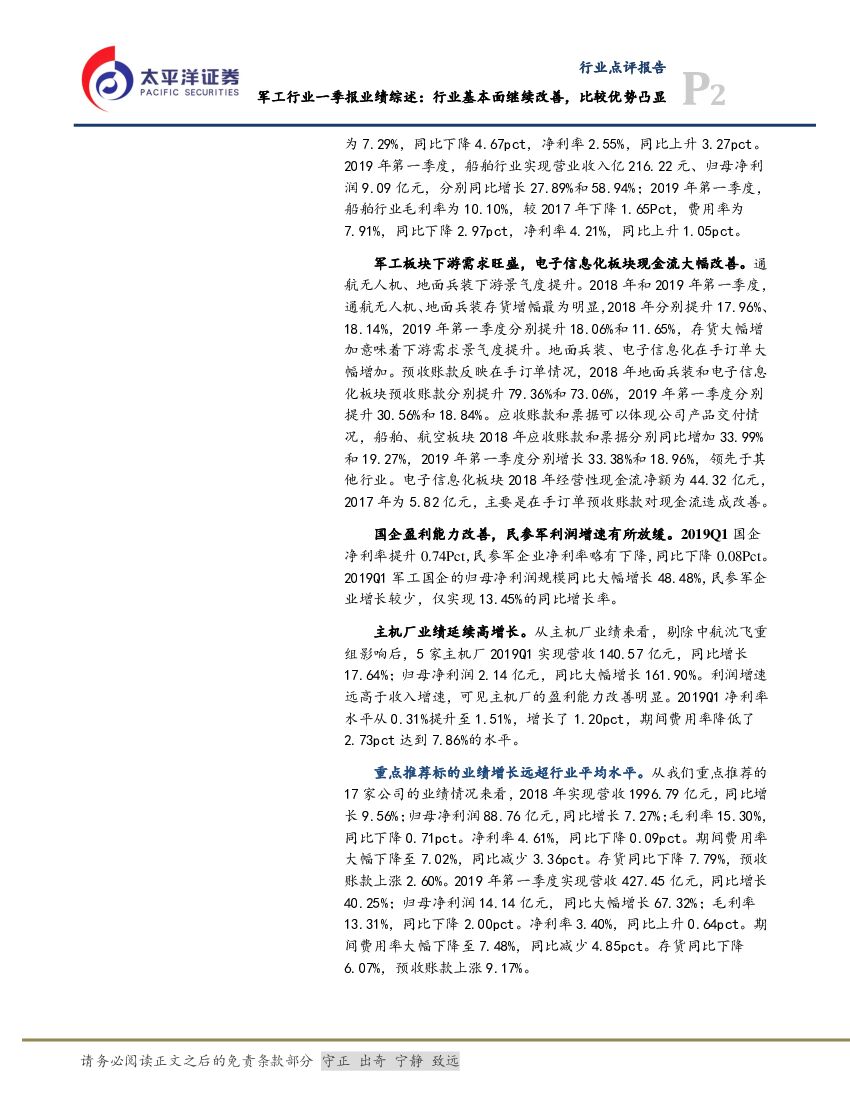 太平洋证券:军工行业一季报业绩综述:行业基本面继续改善,比较优势凸显.pdf