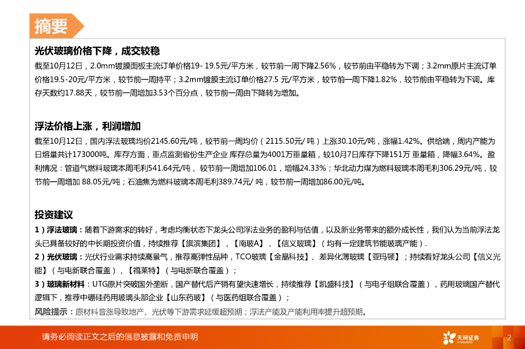天风证券:玻璃玻纤行业研究周报:光伏玻璃价格下调,浮法价格推涨.pdf