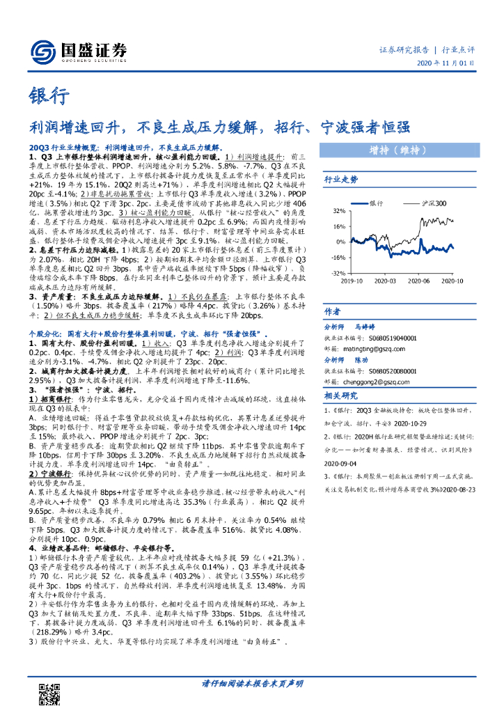 国盛证券:银行行业点评:利润增速回升,不良生成压力缓解,招行、宁波强者恒强.pdf