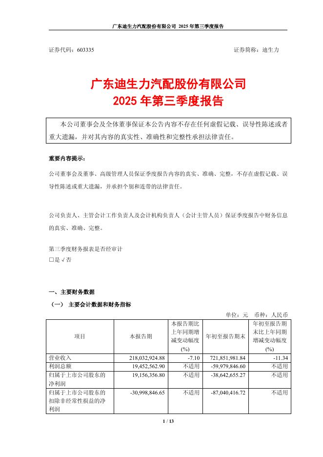 603335-迪生力:迪生力2025年第三季度报告.pdf