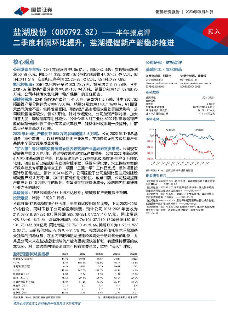 国信证券:盐湖股份(000792)-半年报点评:二季度利润环比提升,盐湖提锂新产能稳步推进.pdf