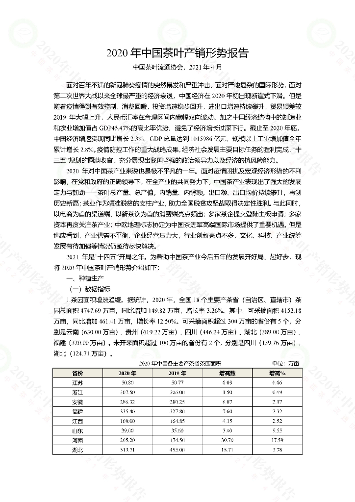 中国茶叶流通协会:2020年中国茶叶产销形势报告.pdf