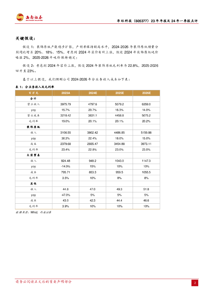 西南证券:华旺科技(605377)-产能释放注入新动力,成本回落助力盈利改善.pdf
