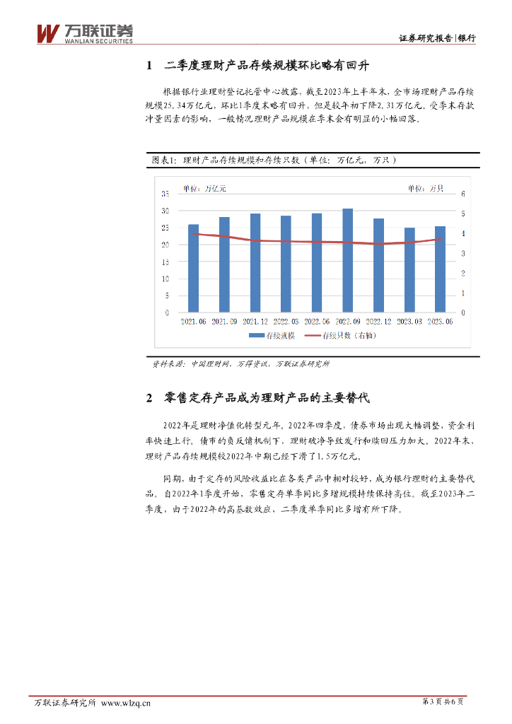 万联证券:银行行业跟踪报告:二季度理财产品存续规模环比略有回升.pdf