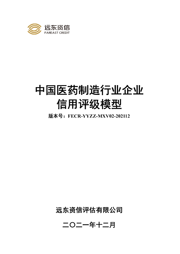 远东资信:中国医药制造行业企业信用评级模型.pdf