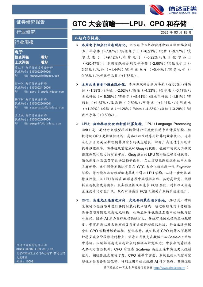 信达证券:电子行业GTC大会前瞻:LPU、CPO和存储.pdf