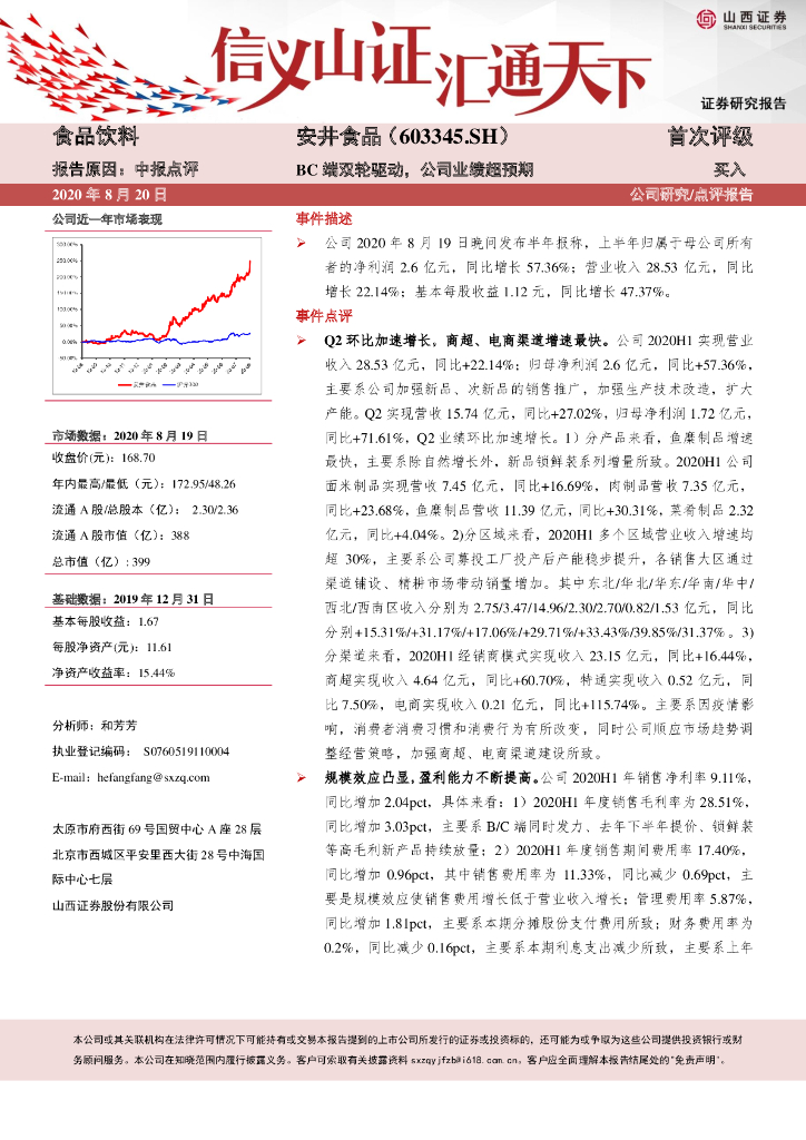 山西证券:安井食品(603345)-BC端双轮驱动,公司业绩超预期.pdf