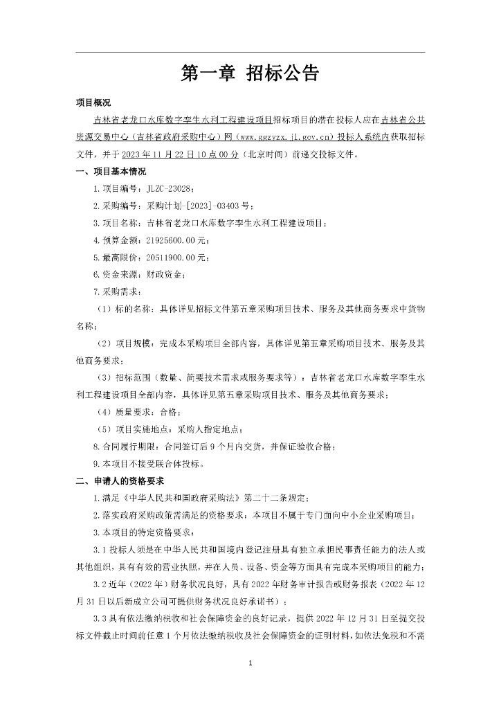 数字孪生水利-吉林省老龙口水库数字孪生水利工程建设项目招标文件.pdf