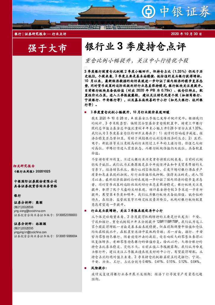 中银证券:银行业3季度持仓点评:重仓比例小幅提升,关注中小行绩优个股.pdf