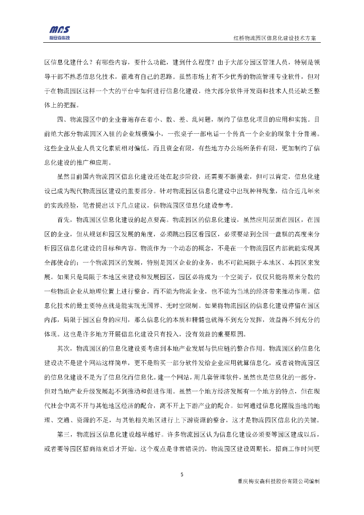 梅安森科技:红桥物流园区现代化信息建设技术方案.pdf